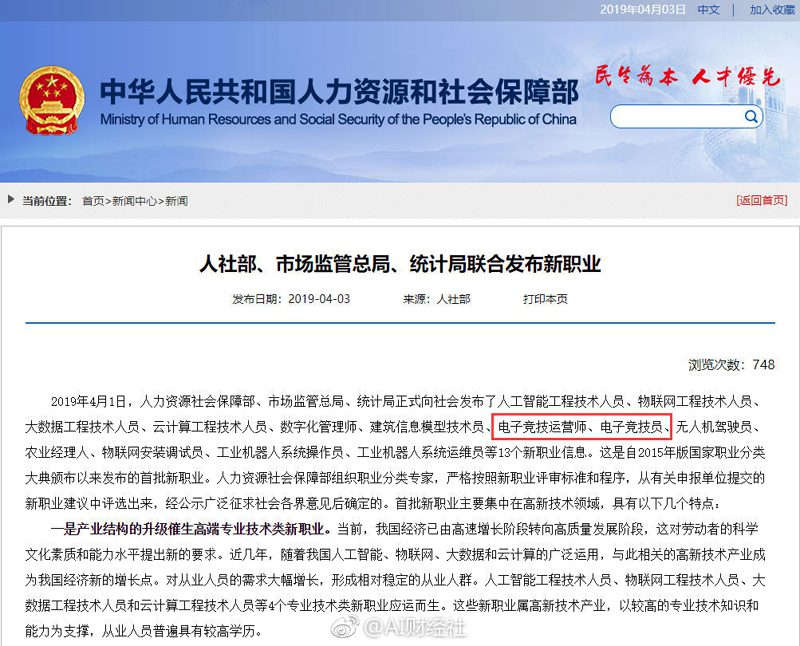 Hoy (3 de abril) el Ministerio de Recursos Humanos de China anunció que los «profesionales de esports» y «operador de esports» han sido confirmadas como dos nuevas profesiones en el país asiático.