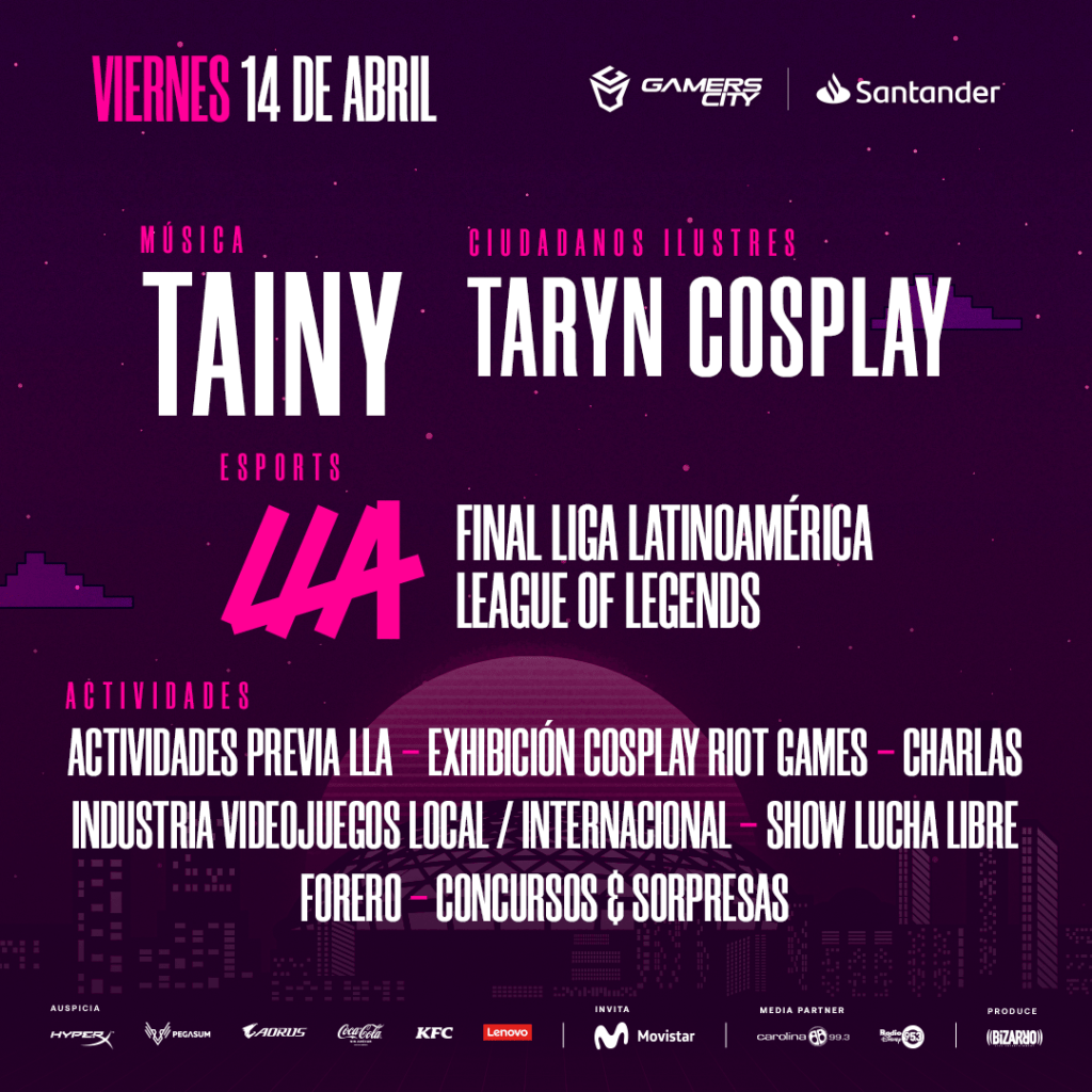 GamersCity Santander dio a conocer el esperado LineUp por día para el próximo 14, 15 y 16 de abril, instancia que reunirá a la cultura gamer y la música en Movistar Arena con 44.000m2 de entretención, una experiencia sin precedentes en nuestro país.