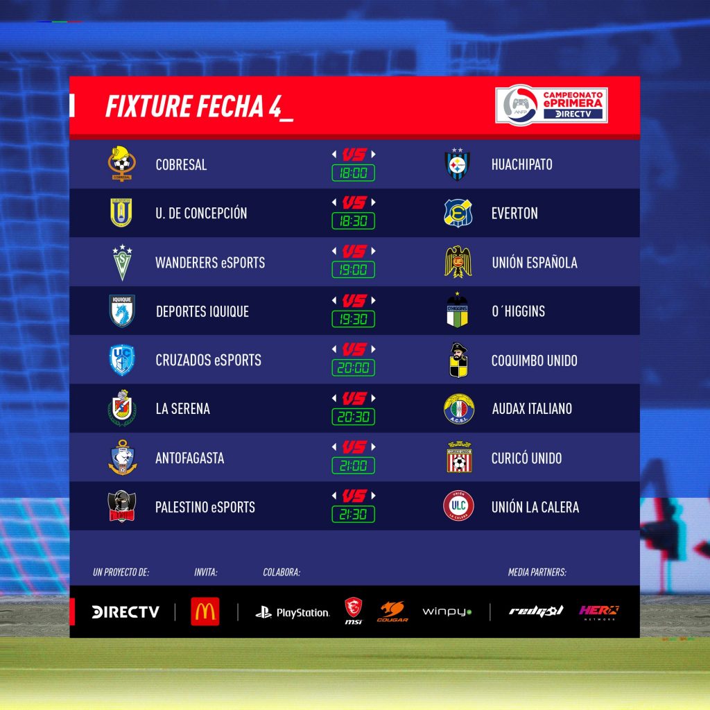 En las primeras dos fechas pudimos ver en acción y medir a los 16 equipos participantes, que representan a los clubes de la máxima categoría del fútbol chileno. Wanderers eSports destacó ganando todos sus encuentros, posicionándose en el primer lugar de la tabla, seguido por Cobresal y La Serena en el segundo y tercer puesto respectivamente.