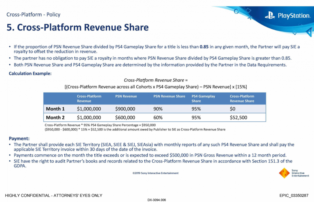 Como en todo negocio, nadie quiere perder y los creadores de PlayStation acordaron permitir el juego cruzado a cambio de regalías, mismas que se pagarían si el porcentaje de ventas mensuales menor de 0.85. Explicad de otra forma, Sony recibiría este pago solo en aquellos casos donde los ingresos por el juego no superaran el 0,85 %.