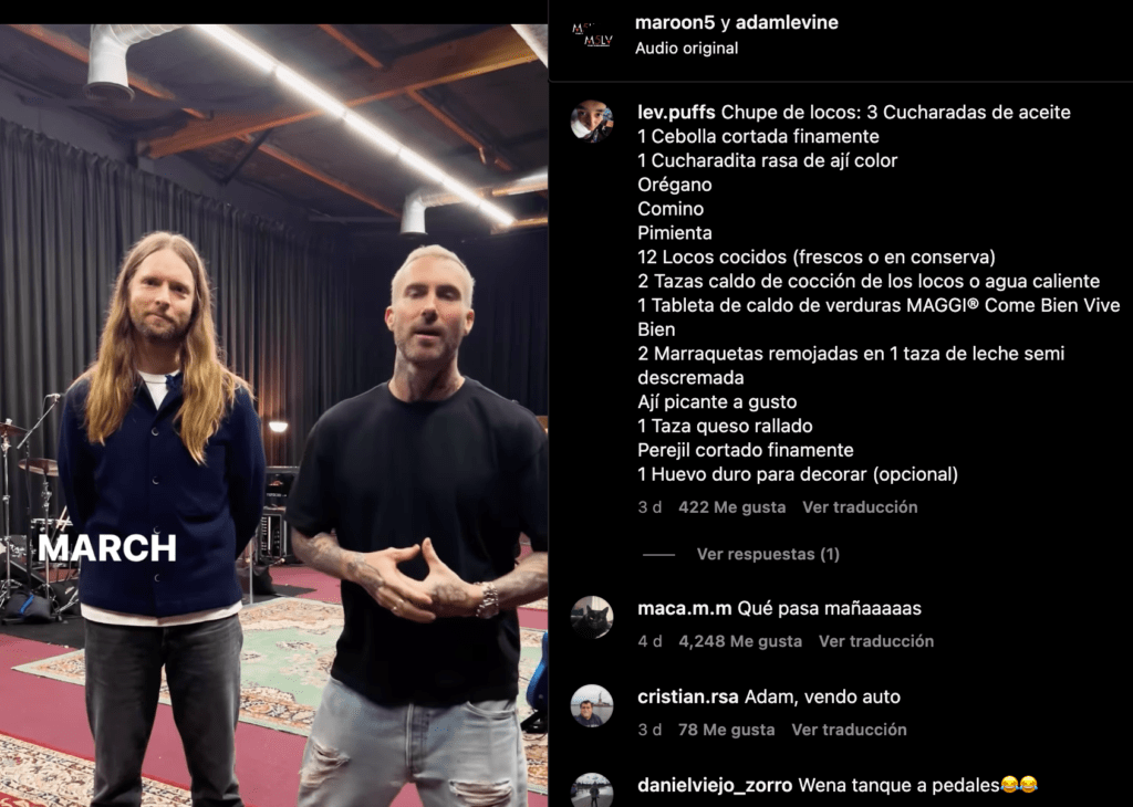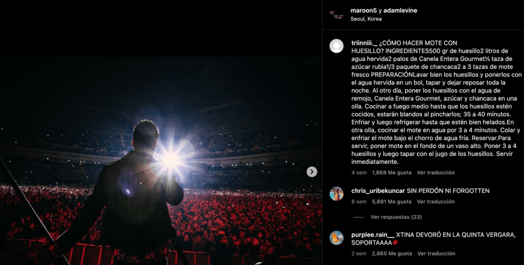 El último ataque al IG del artista consiguió que «El mañas» quitara todos los comentarios en sus publicaciones y que cada vez que sube algún contenido el escuadron Chileno ataca, sin misericordia. En época de Festival, el recuerdo vuelve y las ganas de justicia también. Sólo basta que algún artista mundialmente conocido sea más simpático que Lavine arriba del escenario de la Quinta Vergara, para que «le caigan con un fierro», el último Topic del «trolleo», fue dejar recetas de comida Chilena en su Feed.