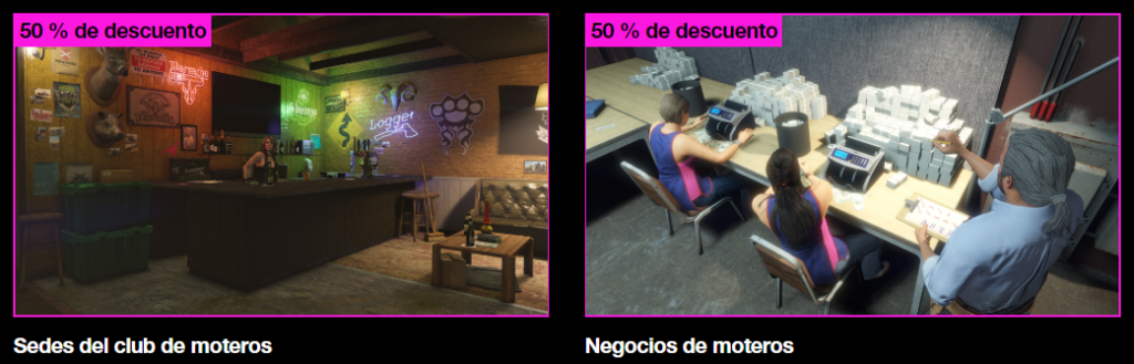 Hay una gran cantidad de ofertas y descuentos en propiedades, incluidos clubes nocturnos, sedes del club de moteros y negocios, así como en una selección de vehículos listos para salir a lucirse por las calles de Los Santos