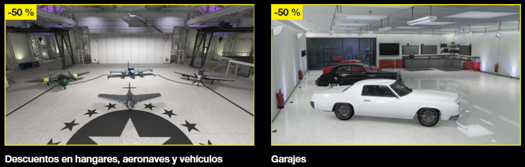 – 50% de descuento en hangares, aeronaves y vehículos: Hangar del Aeropuerto de LS A17, hangar del Aeropuerto de LS 1, hangar de Fort Zancudo 3499, hangar de Fort Zancudo 3497, hangar de Fort Zancudo A2, renovaciones para el hangar.