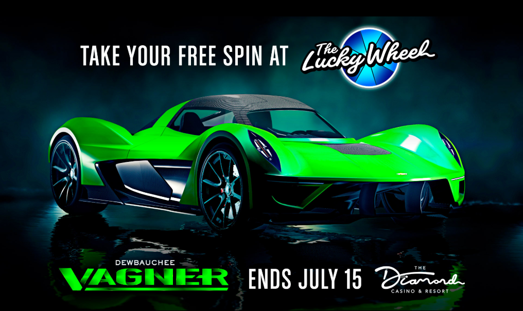 Y no olvides dar una vuelta por el casino, porque esta vez el premio gordo de la rueda de la fortuna es el increíble vehículo Dewbauchee Vagner.