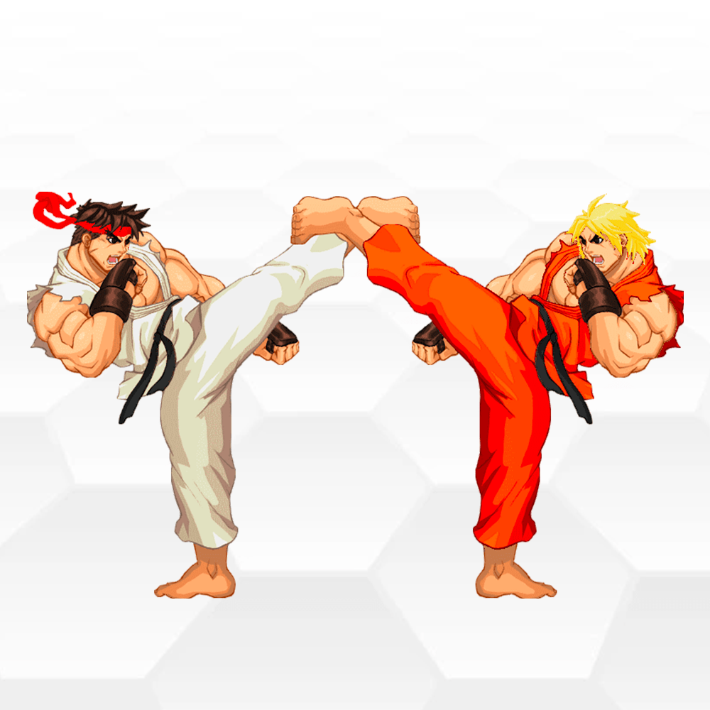 Ken y Ryu son dos de los peleadores callejeros más conocidos en los fighting games. Desde muy adolescentes han tenido una amistad y rivalidad bastante marcada puesto que fueron instruidos en las artes marciales por el mismo maestro. Cada uno tiene destrezas únicas y suelen unir sus puños y patadas en ocasiones especiales.