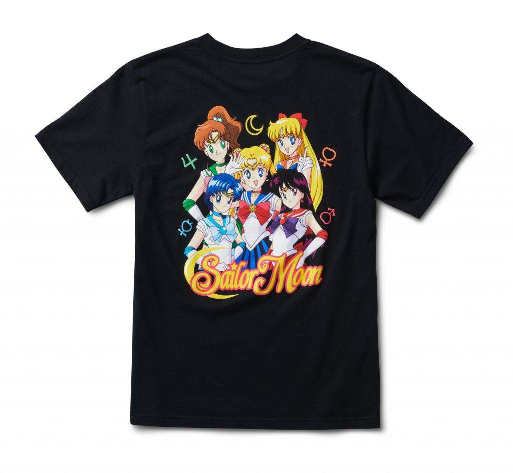 Poleras de corte clásico de distintos colores con imágenes de las mujeres de la serie, polerones Hoodie y el esperado polerón inspirado en el traje de marinero de Serena, la guardiana más fuerte de todas, con el listón rojo y la piedra lunar dorada son algunas de las prendas que llegan a revolucionar a los fanáticos de la serie.
