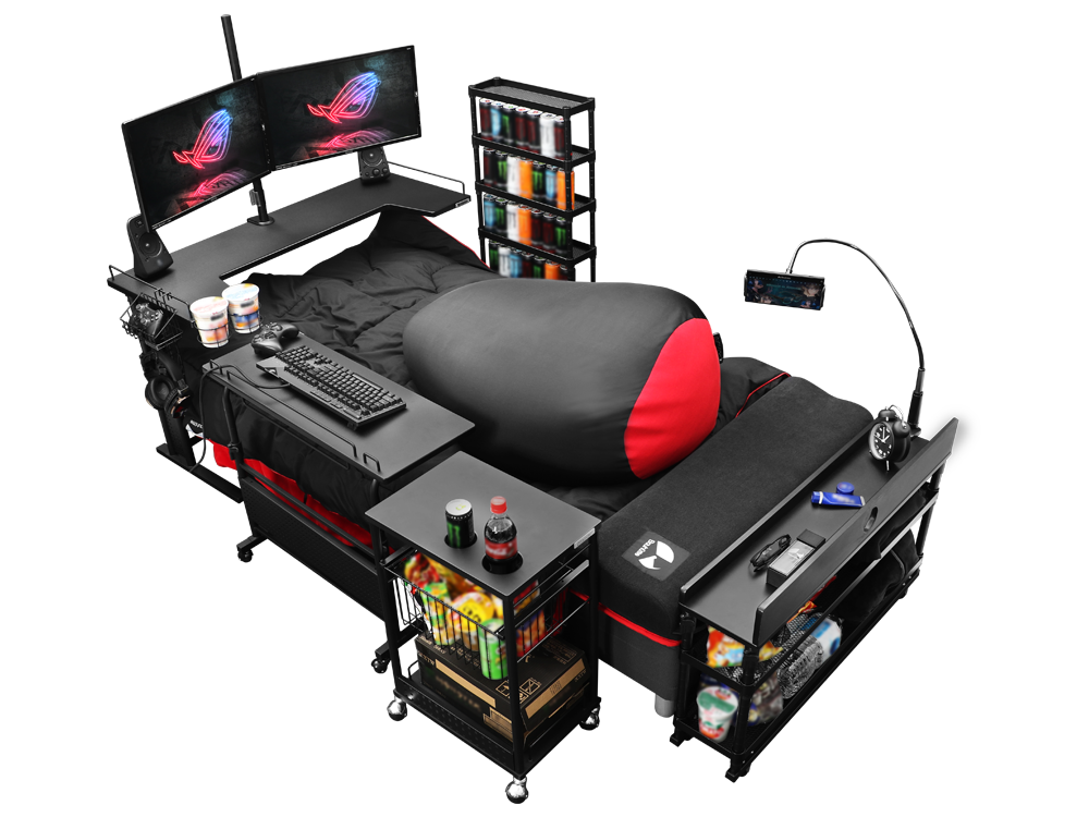 Todo aquel que se haga llamar gamer ha pasado un día entero (o más), haciendo maratón gaming. Y esa actividad requiere levantarse de la cama solo a jugar, pero ya no será necesario. En Japón sacaron al mercado una cama que lo tiene todo.