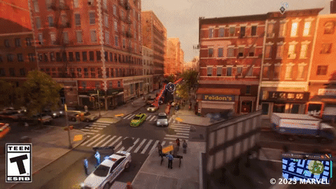 Los jugadores tendrán a dos Spideys al alcance de su mano en Marvel’s Spider-Man 2 y cambiar entre ellos es muy simple. El juego amplía el campo de visión de la cámara hacia la vista aérea de la Nueva York de Marvel cuando cambia entre los héroes y vuelve a acercarse al nuevo Spider-Man seleccionado en algún otro lugar de la ciudad. Es una demostración poderosa y sin interrupciones de la gran velocidad del SSD de PS5.