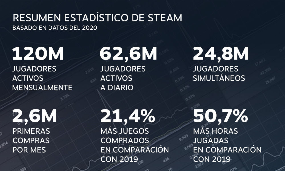 Pero esto no es todo. De acuerdo a las estadísticas, el crecimiento de Steam fue tan significativo en comparación al 2019, que a diario contó con un promedio de 62 millones de personas activas en su web.