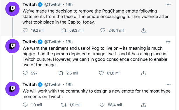 Se desconoce si el emote desaparecerá de Twitch de forma indefinida. Lo cierto es que debido a los disturbios no lo podremos seguir disfrutando, al menos por los momentos.